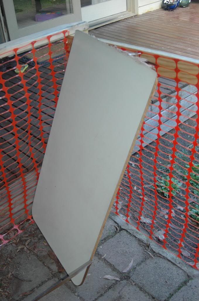 I salvaged the folding leg off it and built a new one out of MDF and pine.